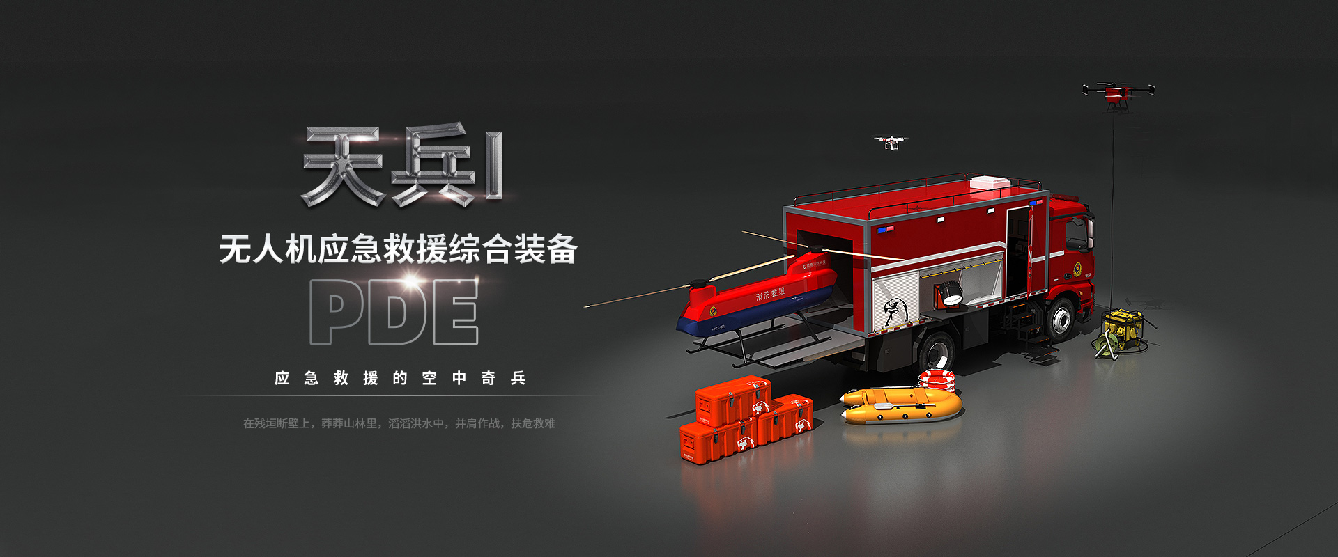 天兵Ⅰ是2017年企業承擔的原公安部消防局《旋翼無人機在滅火搶險救援領域中的應用》科技創新項目的研發成果。配置了大、中、小型無人機,集成多種應急救援模塊和承載運輸車輛,具備野外多場景下應急救援功能。通過搭載各類應急救援模塊,可執行災害事故現場多架次的物資運輸投放、現場偵察、高空照明、通訊中繼任務,以及水域、山岳救援任務,適用于地震救援隊、特勤消防站在地質災害救援中解決“最后一公里”運輸困難,以及在復雜場景下空中救援問題,使消防救援隊伍具備空中物資運輸保障跨障礙救援能力。